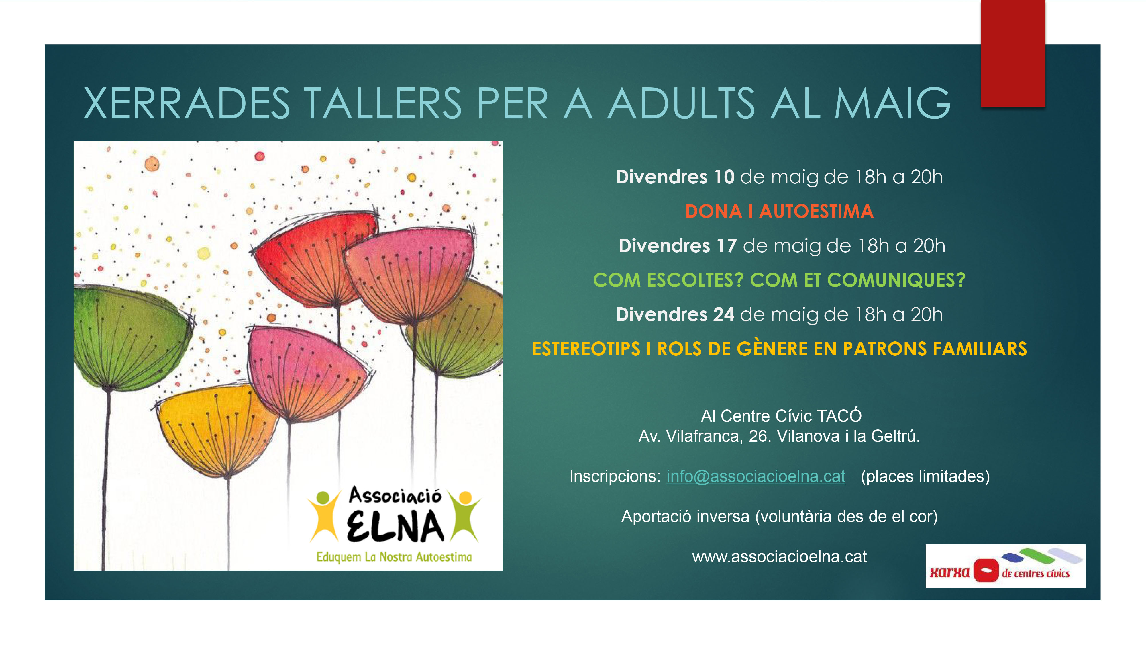 Us fem arribar aquesta informació per si és del vostre interès L’Associació ELNA organitza unes xerrades-col·loqui a Vilanova i la Geltrú que poden ser molt interessants. “Des de la nostra entitat sense ànim de lucre que participa en l’acompanyament de l’educació sòcio-emocional amb valors i creativitat a […]