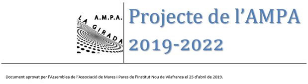 Hola famílies, us fem arribar el projecte de l’AMPA 2019-2022, document aprovat i ratificat per l’Assemblea de l’Associació de Mares i Pares de l’Institut Nou de Vilafranca el 25 d’abril de 2019. Projecte AMPA 2019-2022 La junta de l’AMPA de l’Institut Nou de Vilafranca, escollida l’octubre de […]