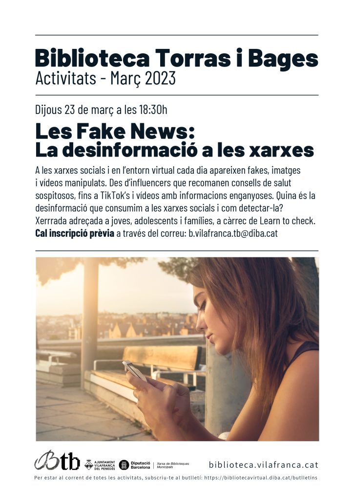 Cicle de 2 xerrades a la Biblioteca Torras i Bages sobre les “fake news” i la desinformació a les xarxes, adreçades a adolescents, joves i famílies