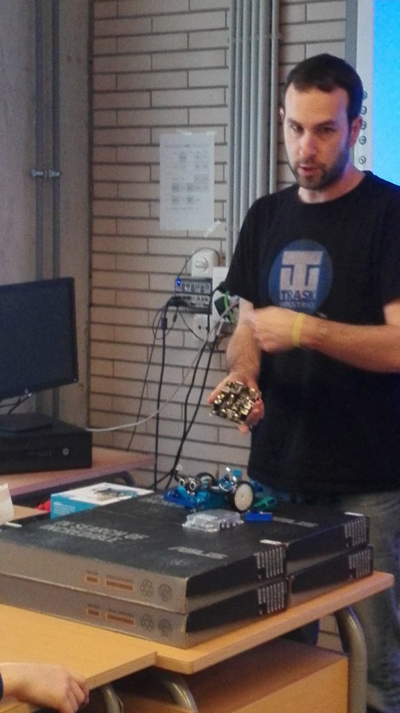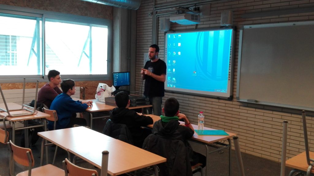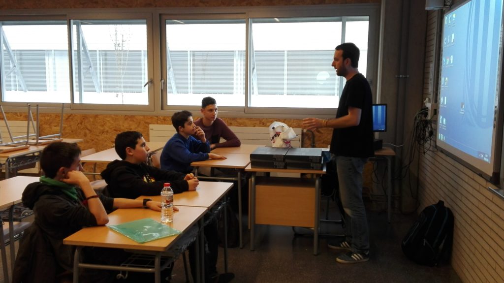 “Hem parlat sobretot de plaques controladores de tipus Arduino, ordinadors i robots. Hem començat a programar (mBlock) i entendre com funciona el robot amb el qual treballem (mBot), connexions i comunicació. Ja hem sigut capaços de programar diferents sensors i actuadors: Leds RGB, Buzzer, matriu Led, motor DC, servomotor, sensor d’ultrasons i sensor de llum. De cara al següent trimestre parlarem del disseny 3D i de la impressió 3D i, si tenim temps, farem alguna sessió amb drons.”