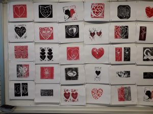 El taller de linogravat s’ha desenvolupat en dues sessions (d’11 a 12.30 h i de 12.45 a 14.15h). Gràficament, els participants han treballat les icones d’un cor i d’un drac per expressar emocions relacionades amb l’amor i la por.
