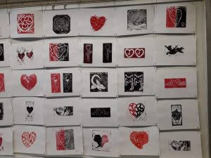El taller de linogravat s’ha desenvolupat en dues sessions (d’11 a 12.30 h i de 12.45 a 14.15h). Gràficament, els participants han treballat les icones d’un cor i d’un drac per expressar emocions relacionades amb l’amor i la por.