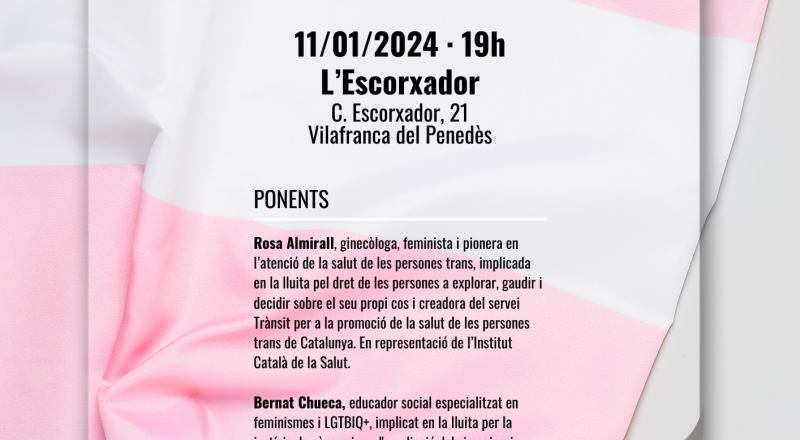 Des del departament de Cultura i amb col·laboració amb el SAI de l’Ajuntament de Vilafranca del Penedès, han preparat la següent taula rodona: Pel proper dijous 11 de gener a les 19h a l’Escorxador de Vilafranca: taula rodona per parlar sobre el concepte transgènere. La durada és […]