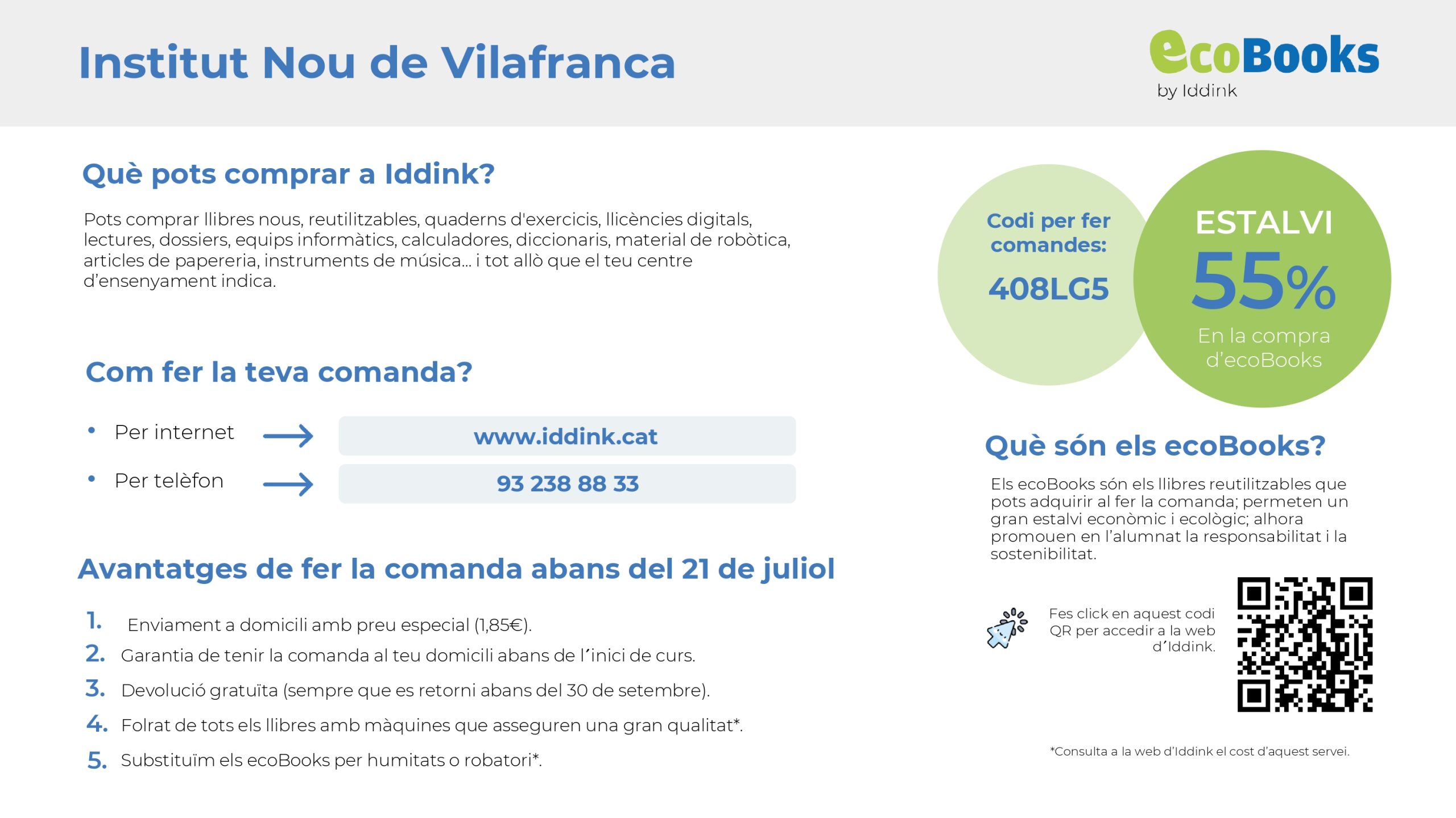 - Comprar llibres reutilitzables (ecoBooks), amb un estalvi* del 55%