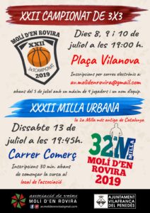 • XXII Campionat de basquet 3×3, que es celebrarà a Vilafranca els pròxims 8, 9 i 10 de juliol a les 19:00 hores.